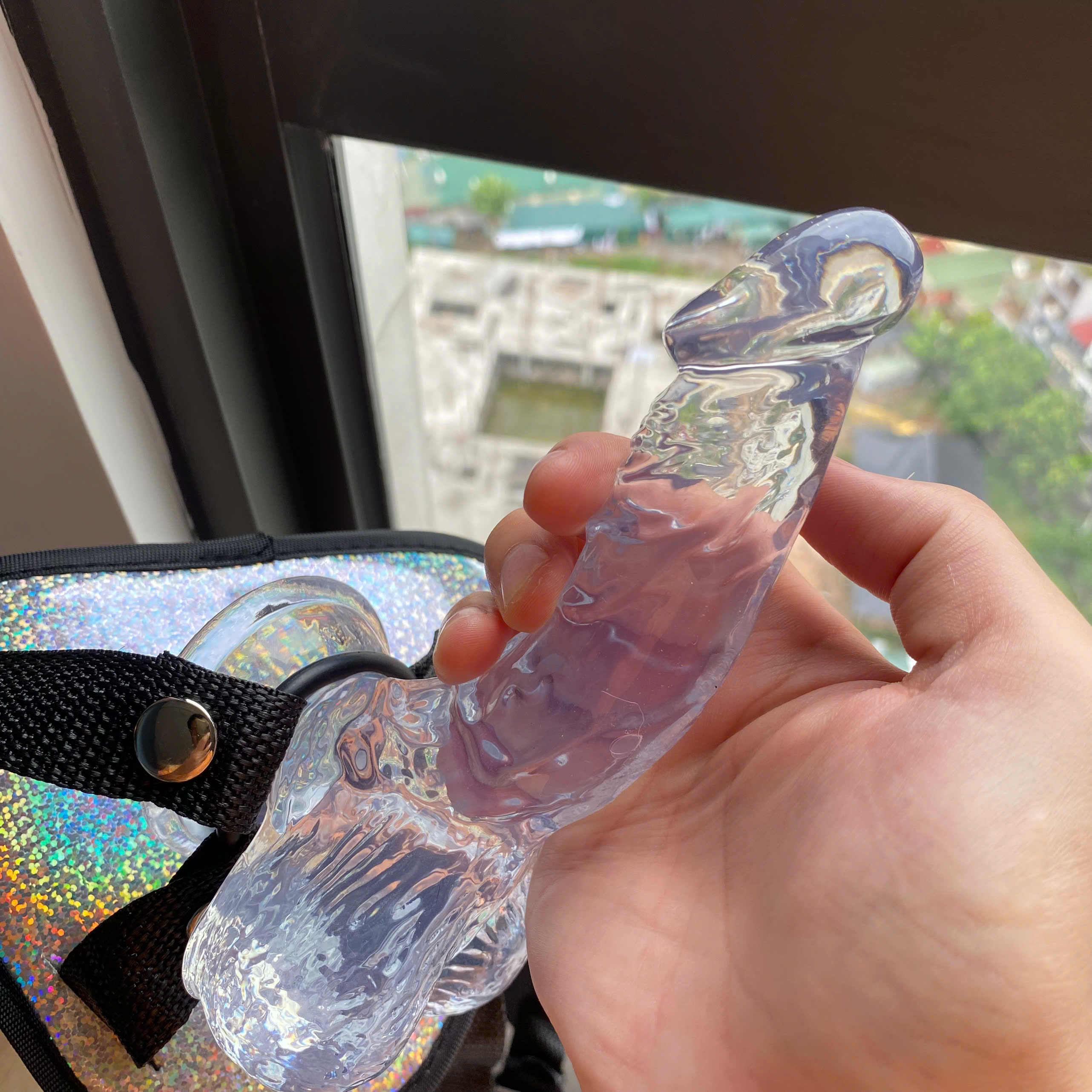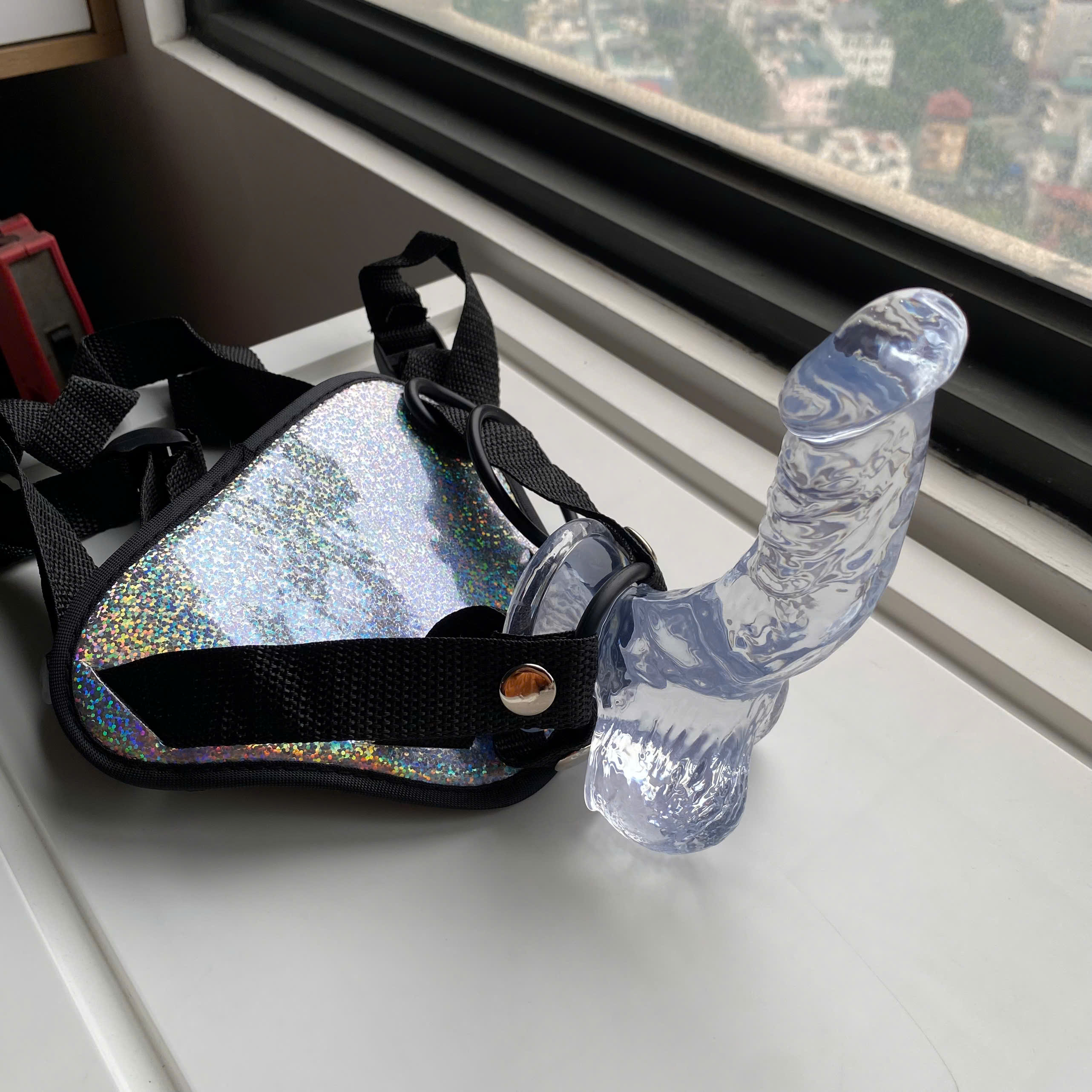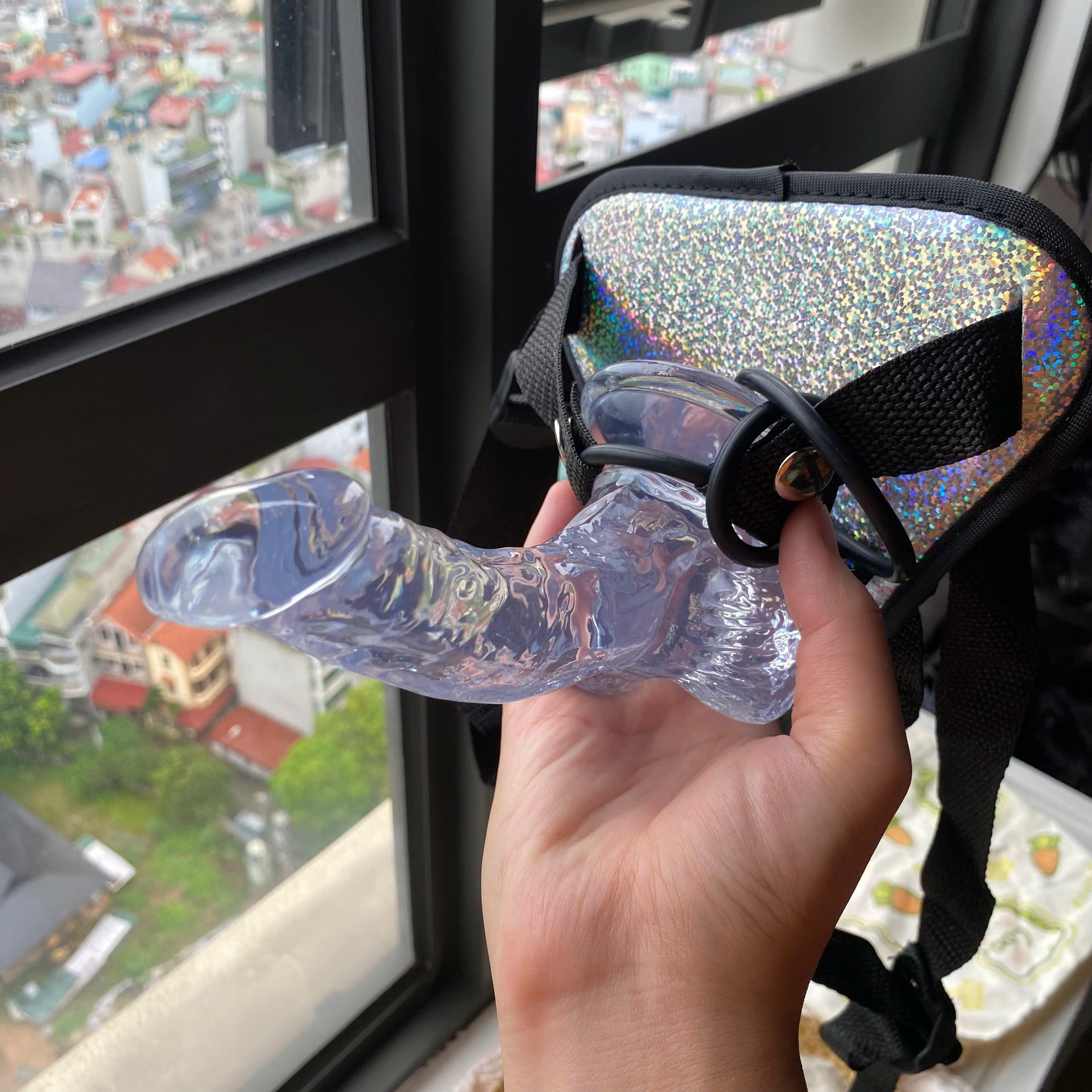 - Bộ sản phẩm gồm: 1 Dây đeo kim tuyến và 1 Dương vật giả trong suốt