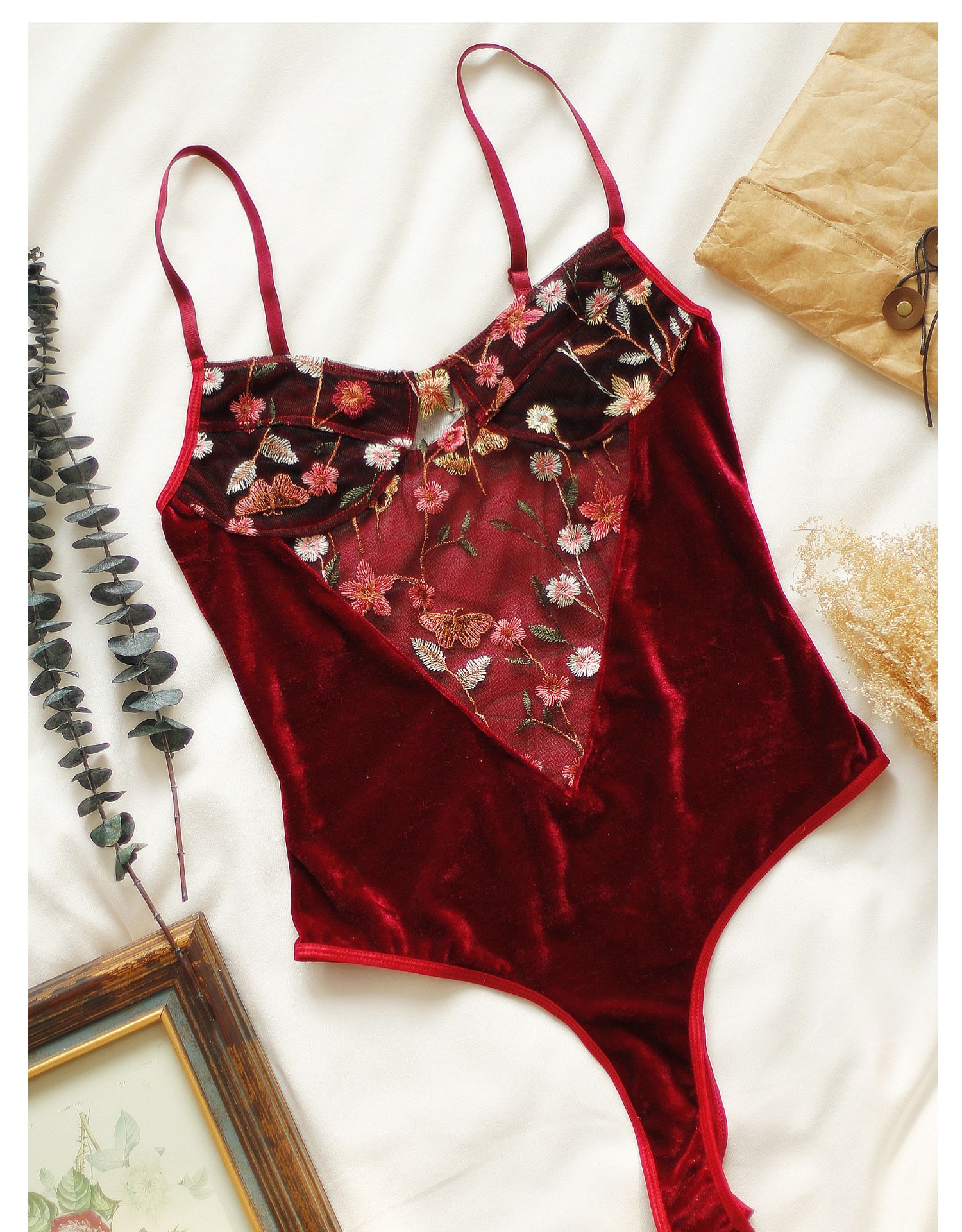 Jumsuit nhung sexy, nhẹ nhàng, cùng họa tiêt thêu hoa lá, xuyên thấu sẽ tôn lên vẻ đẹp quý phái của các nàng. Chất nhung mềm mại ôm body gợi cảm, tạo nên sức hấp dẫn riêng.