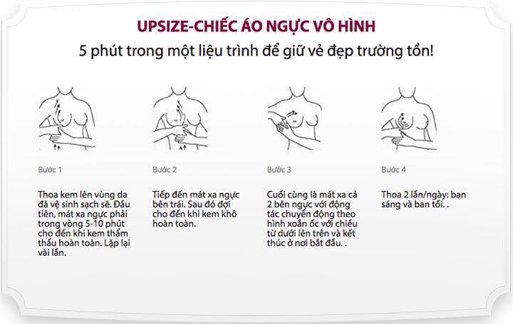 - Kem thoa nở ngực Upsize có công dụng chỉnh hình và nâng ngực một cách tự nhiên.
