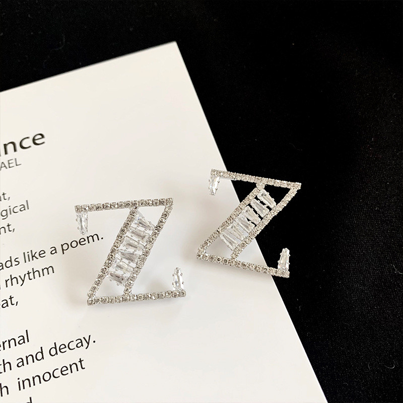 Bông tai chữ Z đính đá là tên gọi mà Nuhoangkhoaicam.vn đặt tên cho mẫu khuyên tai nữ tiểu thư này.