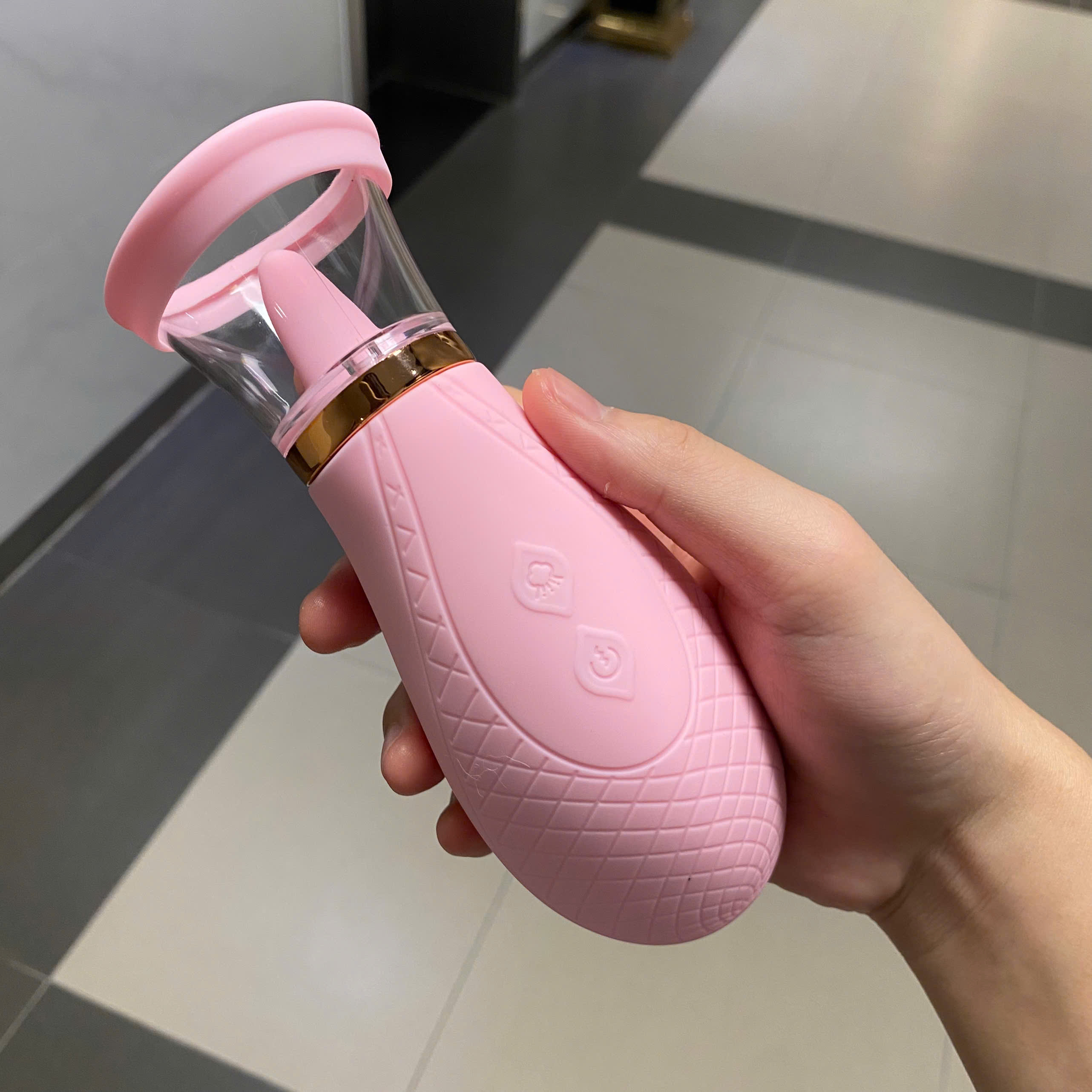 - Giữ chặt nút nguồn để bật/tắt, bấm 1 lần nút nguồn để thay đổi chế độ rung liếm, bấm nút hút để thay đổi chế độ hút