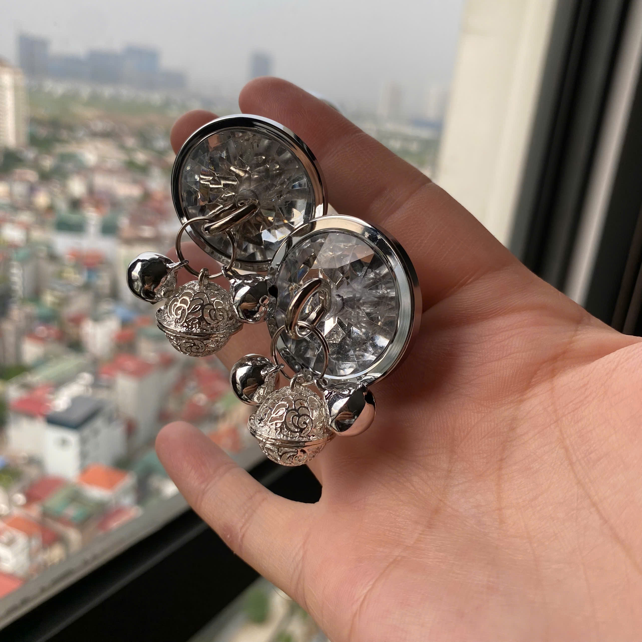 Sản phẩm được chế tác tỉ mỉ với vẻ ngoài lôi cuốn, kết hợp giữa sự mạnh mẽ của kim loại và nét quyến rũ của các chi tiết trang trí. Nút bịt được làm từ chất liệu kim loại cao cấp, không gỉ và an toàn cho da. Điểm nhấn đặc biệt là phần chuôi được trang trí bằng một chiếc chuông nhỏ đính đá lấp lánh (bling bling), tạo ra hiệu ứng thị giác và âm thanh thú vị. Thiết kế này không chỉ mang tính thẩm mỹ cao mà còn mang đến trải nghiệm độc đáo, khác biệt.