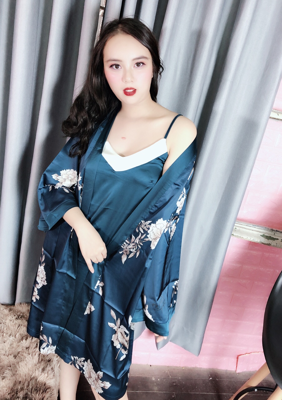 Bộ ngủ lụa nữ hoàng quý phái, thiết kế sang trọng kèm áo choàng có thể mặc đi trong nhà thoải mái, không hở hang nhưng vẫn gợi cảm. Họa tiết nữ hoàng vô cùng dễ mặc