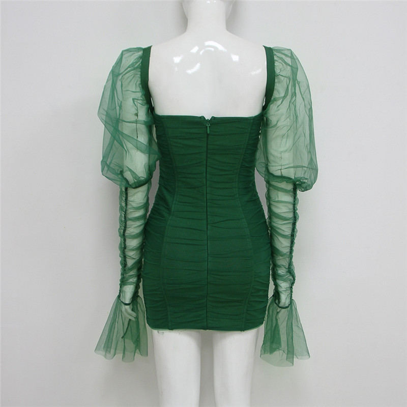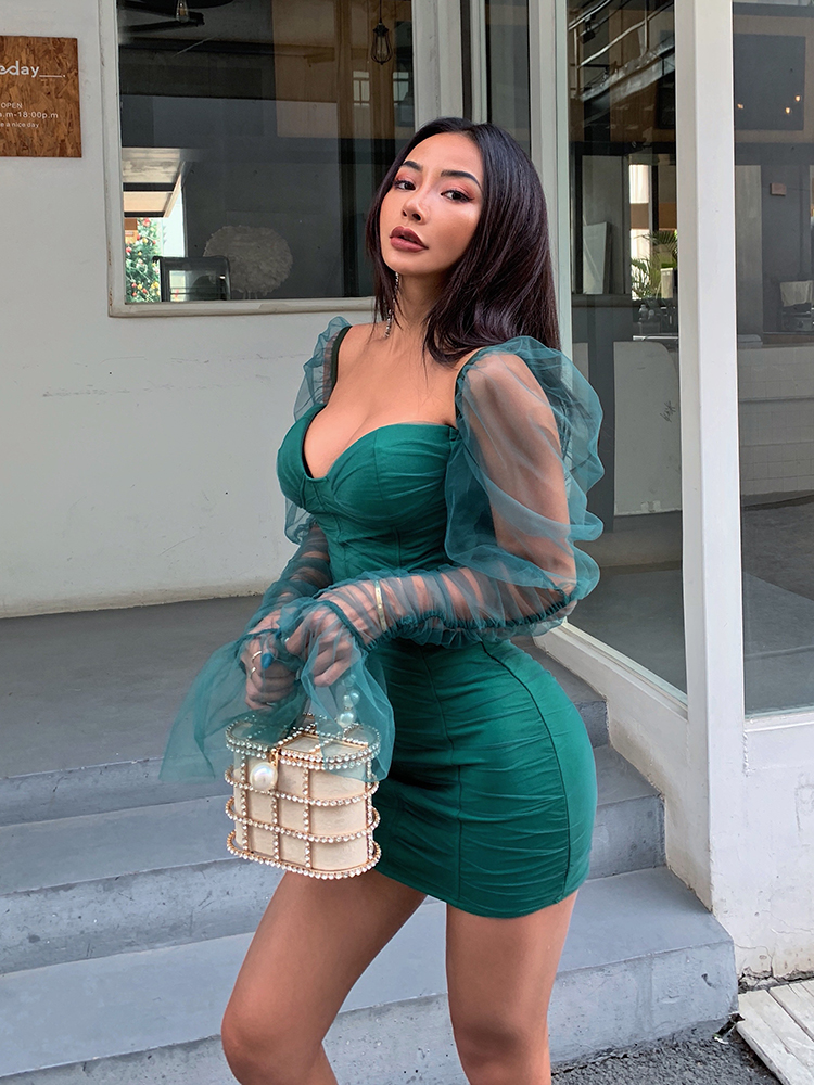 Mẫu đầm với thiết kế trơn với tone màu xanh lá chủ đạo bắt kịp trend năm nay.