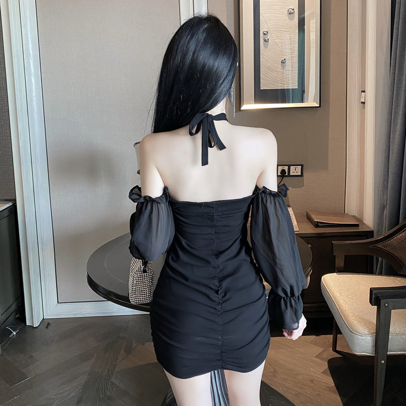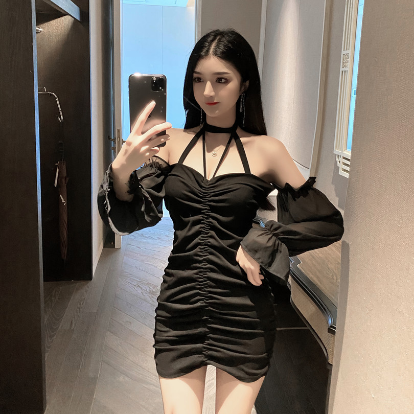 Mẫu đầm với thiết kế ôm body kèm tay dài điệu đà nữ tính.