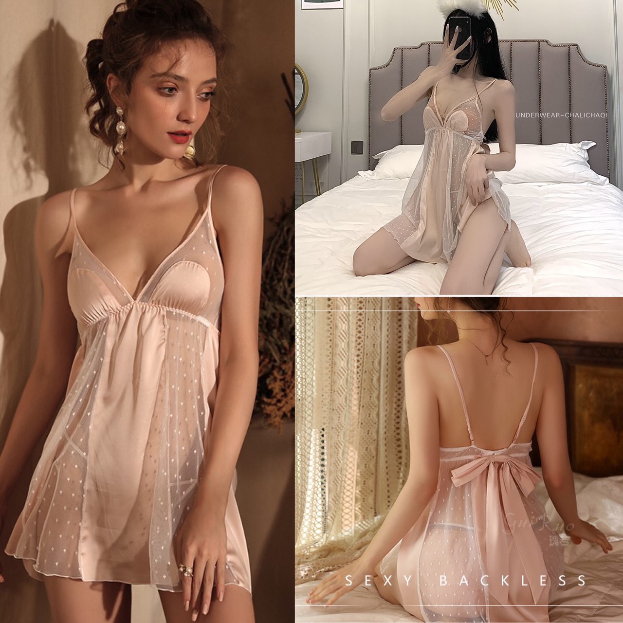 Váy ngủ lụa 2 dây xuyên thấu xẻ thân là mẫu đồ ngủ lụa bán chạy nhất tại Nuhoangkhoaicam.vn.