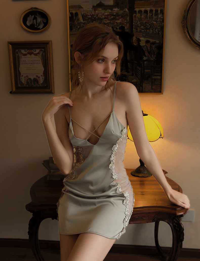 Đầm ngủ lụa trơn ren hoa tam giác cổ điển sử dụng chất liệu lụa cao cấp nhẹ nhàng cùng kiểu dáng sang trọng ren quyên rũ, gợi cảm là món đồ ngủ không thể thiếu trong tủ đồ chị em.