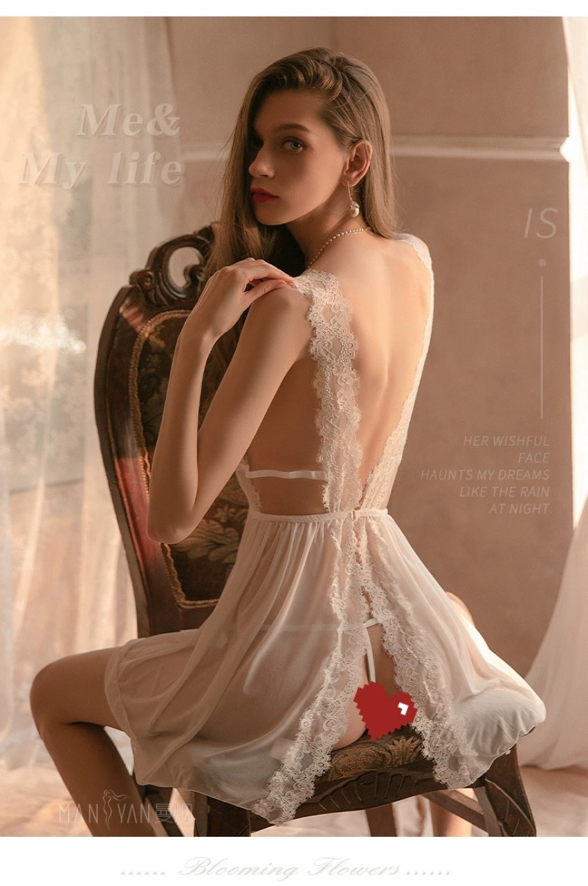 Đầm ngủ tập trung phần ngực xẻ sâu và phân lưng quyến rũ, công chúa, mời gọi khao khát cháy bỏng của phái mạnh.